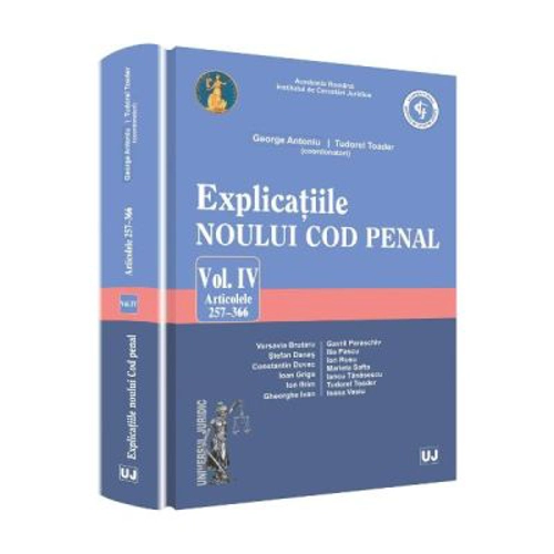 Cele cinci volume de Explicatii ale noului Cod penal, elaborate sub indrumarea Institutului de Cercetari Juridice al Academiei Romane, cu colaborarea unor distinsi oameni de stiinta si practicieni, raspund, fireste, nevoilor de cunoastere, aprofundare si intelegere corecta a dispozitiilor din noul Cod penal. In cuprinsul acestor volume este expus pe larg continutul noilor dispozitii, cu ample referiri la doctrina penala si la practica judiciara in materie. Autorii valorifica in mod competent si documentat gandirea si practica penala din trecutul tarii noastre si, totodata, intrevad caile de perfectionare a legii penale in raport cu dezvoltarea economica, sociala si politica a tarii. De mare interes sunt si observatiile critice ale autorilor asupra noilor dispozitii penale, precum si sugestiile lor in ceea ce priveste imbunatatirea continutului si a formei de exprimare a acestora. Reflectiile profunde si documentate ale autorilor asupra noilor prevederi penale sunt de natura sa orienteze corespunzator organele care le vor pune in practica, asigurand intelegerea si aplicarea lor unitara. Publicarea acestor volume va constitui o contributie notabila si la imbunatatirea calitatii activitatii didactice, la intelegerea superioara a institutiilor penale si a mecanismului lor de aplicare.