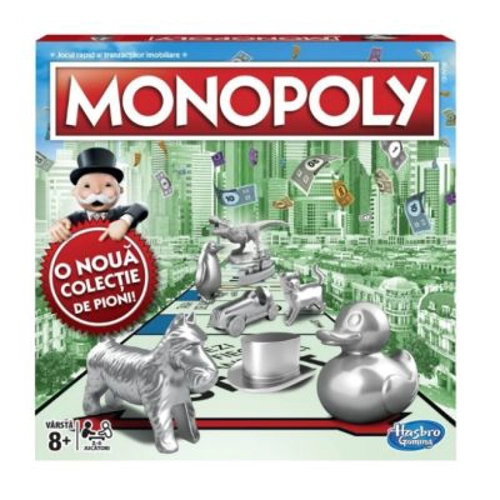 Joc de societate Monopoly, Clasic, in romana Monopoly este un joc de societate care te invata, prin joc, cum sa iti administrezi banii. Descopera cel mai faimos joc de tranzactii imobiliare, in varianta clasica, cu strazile din Bucuresti si cu trei noi pioni: ratusca, pinguin si dinozaurul T-Rex. Alege-ti pionul preferat, misca-te pe tabla, vinde si cumpara proprietati si construieste case si hoteluri din mers. Scopul e sa faci tranzactii profitabile si sa te imbogatesti rapid - in curand vei detine totul! Jocul contine: 1 tabla de joc 8 pioni 28 cartonase - Titluri de proprietate 16 cartonase - Sansa 16 cartonase - Cufarul comunitatii 32 Case 12 hoteluri 2 zaruri pachet de bani regulament de joc Numar minim jucatori 2 Numar maxim jucatori 6