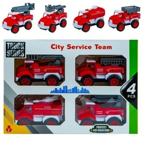 Setul cu cele 4 masinute si functiile lor va starni curiozitatea copilului dezvoltand imaginatia si creativitatea sa. Cele mai bune jucarii sunt cele care ii atrag atentia baietelului tau ore intregi dar in acelasi timp, au si o componenta educativa. Caracteristici: - Jucaria contine 4 camioane pompieri: 1 camion cisterna cu tun de apa, 1 camion cu nacela si 2 camioane cu scara si cos. - Masinutele au fiecare 4 roti din plastic cu striatii si frictiune pe rotile din spate. De asemenea, vehiculele pompieri au parti mobile, tunul de apa se rasuceste orizontal, nacela se ridica manual, la unul din camioane scara se ridica si se lungeste prin glisare, iar la celalalt camion cu scara aceasta se ridica si se pliaza. - Jucaria este realizata din plastic de calitate, non-toxic. - Vehiculele nu functioneaza cu baterii. - Setul ii dezvolta copilului abilitatile motorii fine, imaginatia si creativitatea. Produsul avand un design similar cu un vehicul adevarat, va permite copilului sa imite realitatea.. - Ambalaj: cutie din carton cu ferestre. Dimensiune camion cu cisterna: 10x6. 7x5 cm Dimensiune camion cu nacela: 10x6. 5x5 cm Dimensiune camion cu scara: 10. 5x7. 5x5 cm Dimensiune camion cu scara: 12x8. 5x5 cm Avertizare! Produsul este nou si comercializat in ambalajul original al producatorului. Imaginile de pe acest site au caracter informativ. Ambalajul trebuie indepartat, recuperat si aruncat de catre un adult inainte de a se da spre utilizare copilului. Nu lasati ambalajele produselor la indemana copiilor. Se recomanda utilizarea produsului sub supravegherea unui adult. Produsul poate contine piese mici care se pot inghiti sau inhala de cei mici, existand pericolul de sufocare sau nu este potrivita copiilor mai mici de 3 ani. Pastrati instructiunile si etichetele pentru referinte viitoare. Pastrati produsul departe de foc, si nu il lasati in preajma temperaturilor ridicate si a umiditatii. Datorita masurarii manuale a produsului poate exista o diferenta minora fata de dimensiunea reala a produsului.