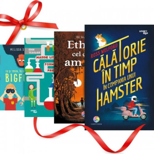 Pachetul conține cărțile: 1. Călătorie în timp în compania unui hamster 2. Ethan, cel care am fost 3. Maddie Little și formula prieteniei 4. Eu și Tobin, în căutarea lui Bigfoot Alte titluri pentru MelissaSavage (autor): Eu și Tobin, în căutarea lui Bigfoot (2019) , Alte titluri pentru RossWelford (autor): Băiețelul de 1000 de ani (2019) , Călătorie în timp în compania unui hamster (2019) , Câinele care a salvat lumea (2019) , Ce să nu faci dacă devii invizibil (2020) , Copilul de pe altă stea (2023) , Alte titluri pentru ErinTeagan (autor): Maddie Little și formula prieteniei (2023) , Alte titluri pentru AliStandish (autor): Ethan, cel care am fost (2020) , Poveștile improbabile de la Baskerville Hall (2024) ,