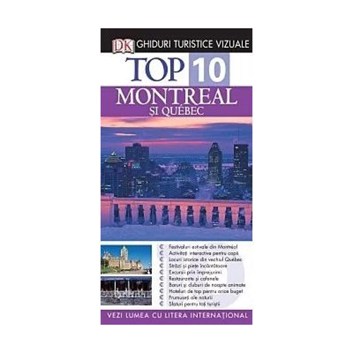 Oricum ati calatori, la clasa intai sau cu buget limitat, acest Ghid Turistic Vizual va conduce spre tot ceea ce Montréal si ville Québec va pot oferi mai bun. Listele diferite de Top 10 – de la festivaluri renumite la cele mai bune restaurante, magazine si hoteluri de top pentru orice buget, distractii extraordinare pentru copii, locuri istorice din vechiul Québec, strazi si piete incantatoare excursii la tara, in imprejurimi, baruri si cluburi de noapte animate, frumuseti ale naturii, sfaturi pentru toti turistii – va furnizeaza toate informatiile necesare. Iar pentru a va economisi timpul si banii, va prezinta si o lista cu lucruri de evitat. Votat cel mai bun ghid turistic de cititorii revistelor Guardian si Observer.