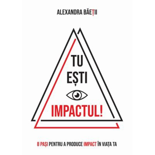 Cartea TU ESTI IMPACTUL! – 8 PASI PENTRU A PRODUCE IMPACT IN VIATA TA – este o carte de dezvoltare personala, scrisa de o adolescenta de 18 ani, pentru a produce impact in vietile adolescentilor si tuturor celor care doresc sa se dezvolte personal. Impactul, in zona sa profunda, nu este decat o cautare de sine, o calatorie indrazneata in strafundul sufletului. Pasii esentiali sunt extrem de necesari si presupun o dualitate: IDEEA implica MOTIVATIA, in chip natural PLANUL preceda ACTIUNEA, CURAJUL presupune TIMP, iar URCUSUL se pare ca nu are LIMITE. Despre autor: Alexandra Baetii este o tanara scriitoare care a debutat la varsta de 13 ani cu romanul sau captivant “Impactul”, lansandu-se in lumea fictiunii. Viziunea ei despre vointa, efort, implicare, constientizare va avea impact asupra oricarui tanar dornic sa descopere cartiele ei si sa invete ceva nou. Este pasionata de dezvoltare personala, iar cu aceasta carte “TU ESTI IMPACTUL! 8 PASI PENTRU A PRODUCE IMPACT IN VIATA TA” doreste sa ajute adolescentii si pe toti cei care vor sa produca impact in vietile lor sa inteleaga importanta cunoasterii de sine si a realizarii unui proiect.