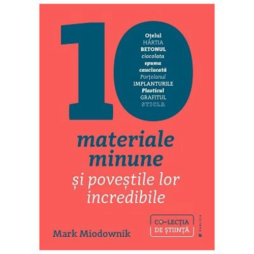 De ce este transparenta sticla? Ce face ca un elastic sa poata fi intins? De ce se indoaie o agrafa? De ce materialele arata si se comporta atat de diferit? Acestea sunt genul de intrebari pe care si le pune mereu Mark Miodownik. Fiind un cercetator al materialelor renumit in lumea intreaga, Miodownik si-a petrecut viata explorand stiinta obiectelor din viata noastra, de la cele banale, precum un plic de hartie, la cele neasteptate, precum betonul textil, dezvaluind secretele fascinante care stau la baza lumii noastre fizice. In cartea sa, Miodownik ne prezinta intr-un mod foarte interesant materialele pe care le-a intalnit intr-o dimineata obisnuita, de la otelul din lama de ras si grafitul din creion, la buretele din pantofii sai sport si betonul dintr-un zgarie-nori construit in apropierea casei sale. Miodownik ne ofera un compendiu al celor mai uimitoare descoperiri stiintifice din lumea materialelor, precum: ⁕ Alchimistul arestat, care s-a salvat de la executie dupa ce a creat primul portelan european; ⁕ „Bijuteria” din Calea Lactee – o planeta de cinci ori mai mare decat Pamantul, formata in intregime din diamant; ⁕ Grafenul, cel mai subtire, mai puternic si mai rezistent material pe care-l cunoastem, cu o grosime de un singur atom, care ar putea fi folosit pentru a face cladiri intregi sensibile la o simpla atingere. De la ceasca de ceai la motorul cu reactie, de la cipul din siliciu la simpla agrafa de hartie, ori de la plasticul din echipamentele noastre la elasticul din lenjeria intima, vietile noastre sunt dominate de materiale minune. Plina de istorii fascinante ale miracolelor de inginerie care ne fac posibila viata moderna, aceasta carte te va face sa privesti cu alti ochi obiectele din jurul tau. O carte dedicata unor minuni ascunse: abilitatile uimitoare ale materialelor pe care le consideram banale, plictisitoare si nedemne de atentia noastra. Se poate ca aceste istorii stiintifice sa mai fi fost spuse si in alte carti, insa, precum un ciocolatier talentat, Miodownik a compus cel mai potrivit amestec. The New York Times Book Review Obiectele obisnuite si-au gasit un poet in Mark Miodownik. Recunosc cu rusine ca aveam impresia ca stiinta materialelor era plictisitoare si banala. Insa 10 materiale minune m-a facut sa ma razgandesc, iar acum ma trezesc uneori mangaind cu degetele obiectele din jurul meu si admirandu-le. Aceasta carte interesanta si elocventa va schimba modul in care vezi lumea din jurul tau. Wall Street Journal Specialistul in materiale Miodownik combina scene amuzante din viata cotidiana din Londra cu comportamentul subatomic al materiei, pentru a explica progresele ingineresti care ne-au adus sabiile de samurai, zgarie-norii, bilele de biliard sau ciocolata. De la betonul folosit in arhitectura Imperiului Roman la grafenul modern, gros cat un atom, Miodownik ne prezinta un tablou al evolutiei materialelor care ne ajuta sa ne facem o idee despre aplicatiile viitorului. Inteligenta in toate sensurile cuvantului, 10 materiale minune te face sa te uiti mai mult la ferestre decat prin ele. Discover Mark Andrew Miodownik este cercetator specializat in stiinta materialelor, inginer, jurnalist si profesor la University College London. A fost directorul Grupului de cercetare a materialelor de la King's College London si cofondator al Bibliotecii Materialelor.